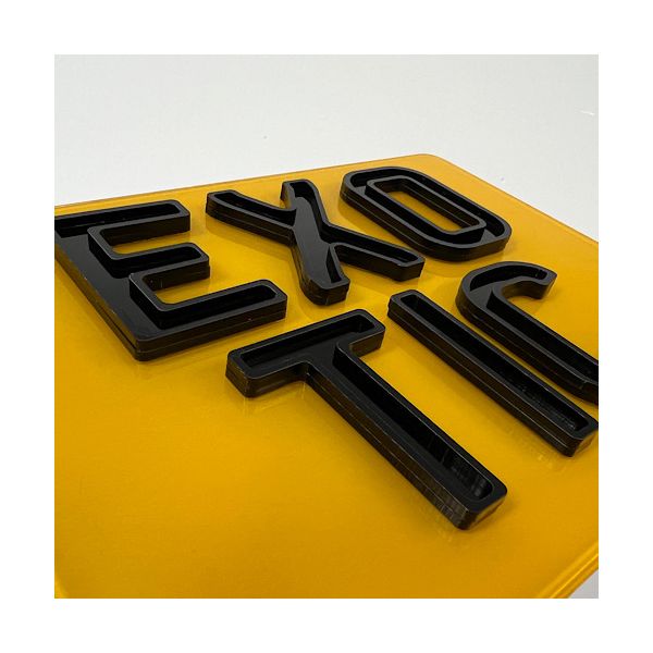 Set of premium 4D Gloss Black Ghost number plates laser cut to perfection. Manufactured using cutting edge laser technology in house, these are the latest bespoke number plates currently on trend. All characters have been designed to match the current Charles wright font. We use the highest quality letters and digits by using 3mm gloss black acrylic characters.  As per the legality all of our plates are complaint with the DVLA standards ensuring they are MOT complaint with each plate marked with Easy Number Plates details and British Standards (BS AU 145e) markings.