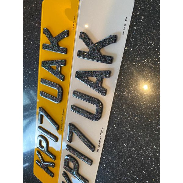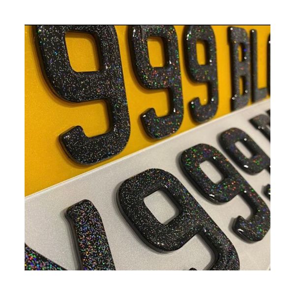 Set of premium 4D glitter gel number plates laser cut to perfection. Manufactured using cutting-edge laser technology in-house, these are the latest bespoke number plates currently on-trend. All characters have been designed to match the current Charles wright font. We use the highest quality letters and digits by using 5mm thick glitter gel. As per the legality, all of our plates are compliant with the DVLA standards ensuring they are MOT complaint with each plate marked with Easy Number Plates details and British Standards (BS AU 145d) markings.