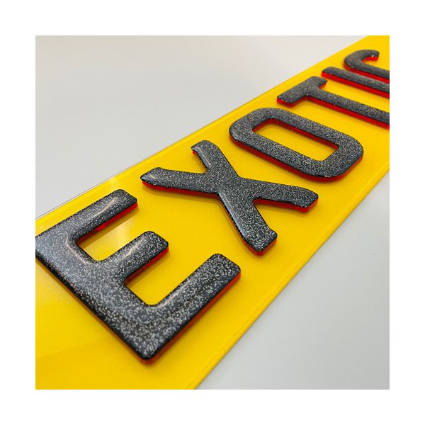 Set of premium 4D Glitter Gel Red Replacement Number Plates laser cut to perfection. Manufactured using cutting edge laser technology in house, these are the latest bespoke number plates currently on trend. All characters have been designed to match the current Charles wright font. We use the highest quality letters and digits by using 3mm Neon red characters topped in jet black acrylic. As per the legality all of our plates are complaint with the DVLA standards ensuring they are MOT complaint with each plate marked with Easy Number Plates details and British Standards (BS AU 145d) markings.