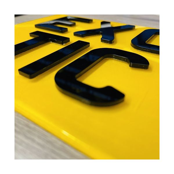 Set of premium 4D Gloss Black number plates laser cut to perfection. Manufactured using cutting edge laser technology in house, these are the latest bespoke number plates currently on trend. All characters have been designed to match the current Charles wright font. We use the highest quality letters and digits by using 3mm gloss black acrylic characters.  As per the legality all of our plates are complaint with the DVLA standards ensuring they are MOT complaint with each plate marked with Easy Number Plates details and British Standards (BS AU 145d) markings.